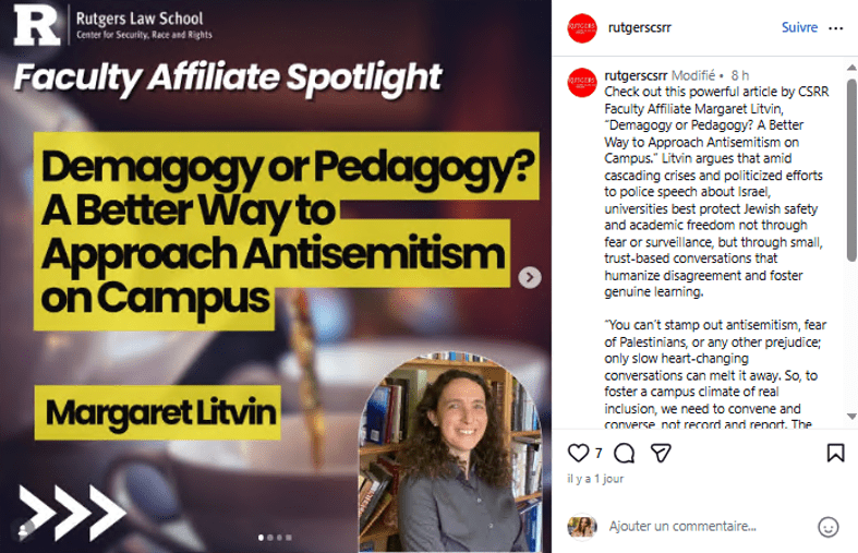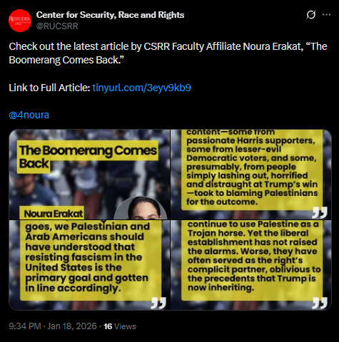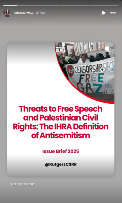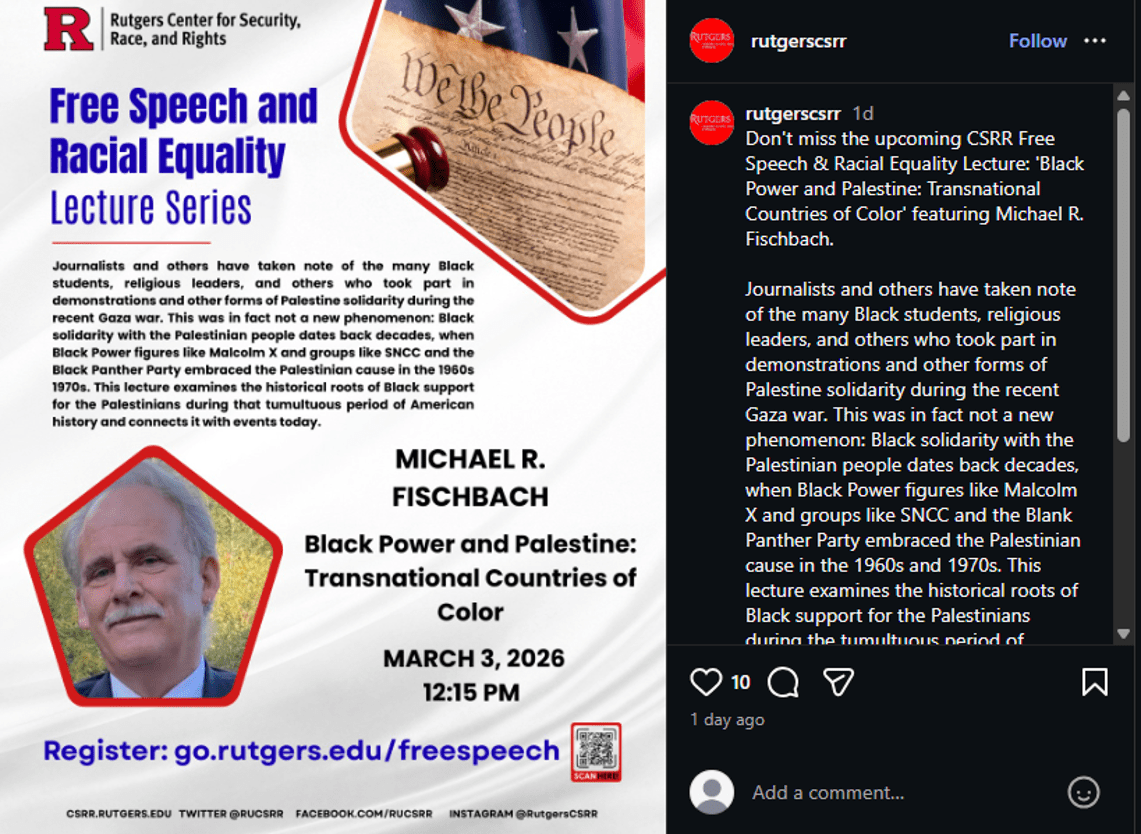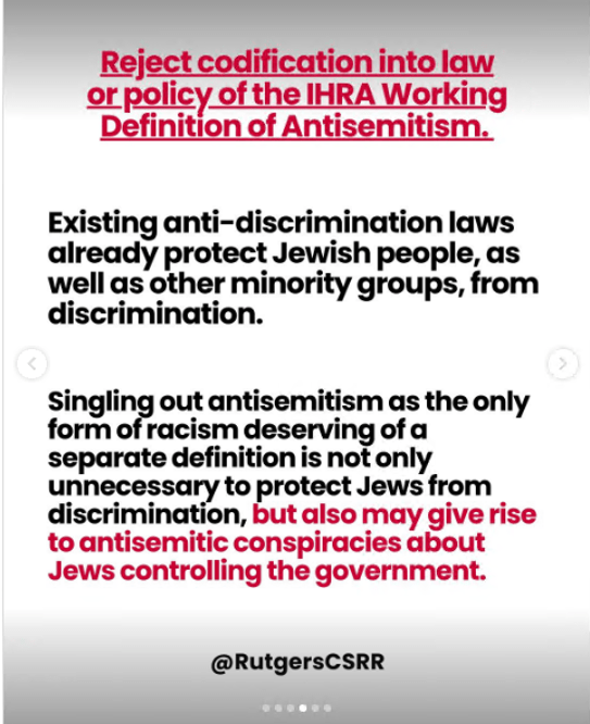 MisinformationRutgers CSRR celebrates its publication “Threats to Free Speech and Palestinian Civil Rights – The IHRA Definition of Antisemitism” as a ‘groundbreaking achievement by CSRR in 2025’