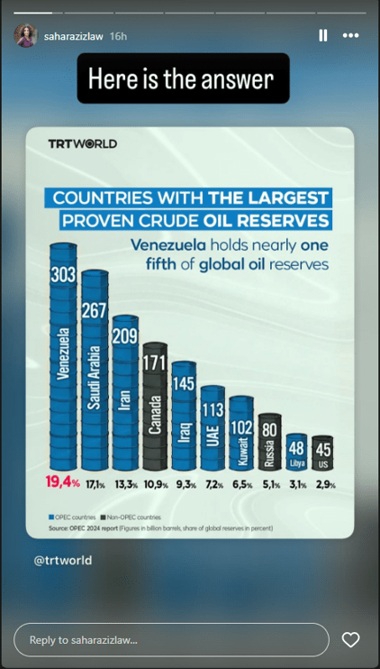 MisinformationClaiming the US intervention in Venezuela is for oil
