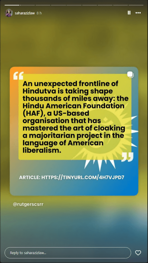 Sahar Aziz posting about Hindutva